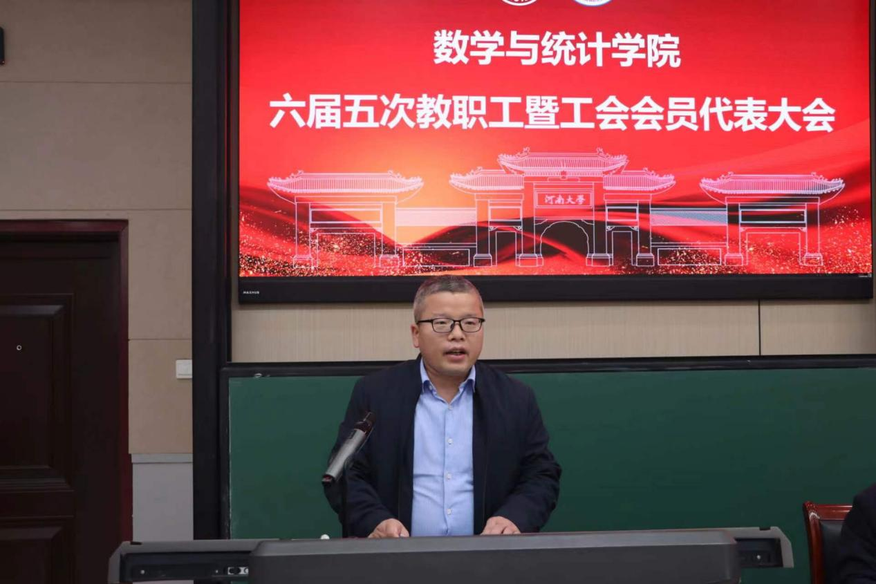 会议第一阶段由学院党委副书记赵红磊主持。院长韩小森作了《新百年 再出发 为实现学院更快更好发展而接续奋斗》的学院工作报告。韩小森在报告中谈到,2022年是不平凡的一年,疫情反复不断,为学院各项工作开展带来了诸多不利影响,但在全院师生的共同努力下仍取得了可喜成绩,学院数学学科由C+升至B-,实现了重大突破,为学院新百年发展奠定了良好开局;统计学科继续稳定在C+,党的建设、学科建设、科学研究、人才培养、师资队伍建设、国际化交流、服务保障等方面均取得长足进步。2023年,在建院100周年的重要历史时刻,学院将继续以习近平新时代中国特色社会主义思想为指引,以百年院庆为契机,以更加积极的态度、更加执著的努力、更加务实的作风,为学院更快更好发展而接续奋斗,不断创造学院发展新辉煌。
