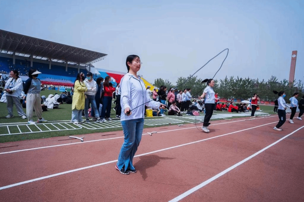 场上长绳飞舞,加油声不断