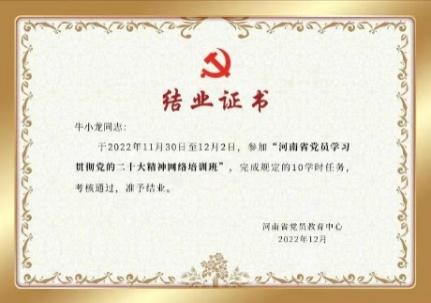 247宿舍成员思想进步,其中牛小龙、梁梦翔为中共党员,胡文帅为预备党员,樊继良为共青团员。他们经常一起学习党的最新理论成果,参加“河南省党员学习贯彻党的二十大精神网络培训班”等。每天晚上通过学习强国APP学习新知识,带头参与每周青年大学习打卡,认真践行“学习新思想,争做新青年“的口号。宿舍成员时刻追求思想先进,始终保持团结友爱的态度,相互支持、帮助。