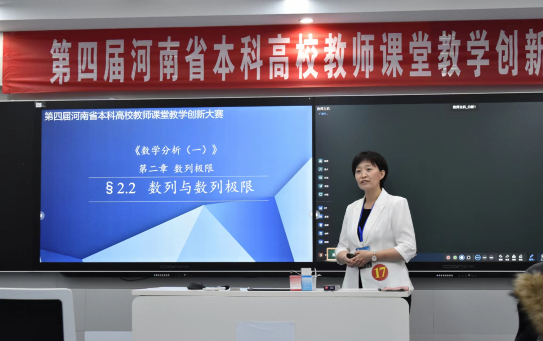 三尺讲台之上,一位老师身着白色西装,留着干练的短发,神采飞扬地讲解着“数列与数列极限”问题,她的讲解条理清晰、深入浅出,在课程结束后赢得一片掌声。她便是第四届河南省本科高校课堂教学创新大赛教授组特等奖获得者、av麻豆