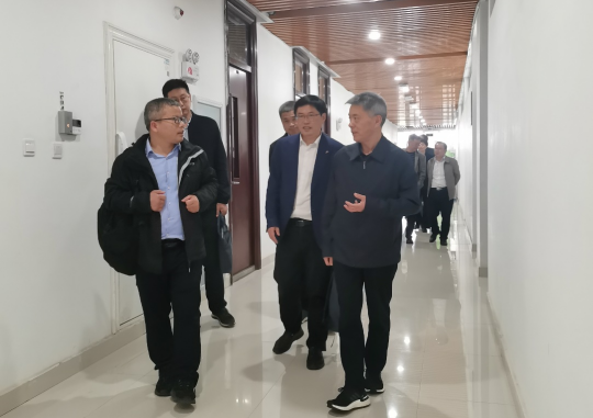 会议结束后,专家组和参会人员一同来到九章学堂C座三楼对中心进行现场考察。专家们仔细查看了中心的办公条件和硬件设施,详细询问了中心日常管理情况并对中心师生的桌椅是否可以午休、办公室通风设施是否完善等问题表达了关心。