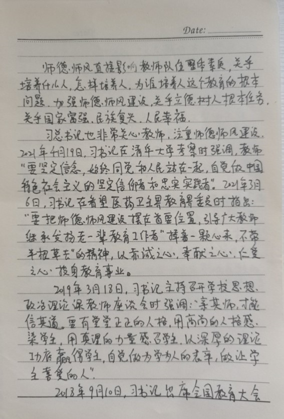 9月11日,学院教师程俊芳把抄写的经典语句分享给大家,鼓励大家在阅读中分享自己的反思与体会。