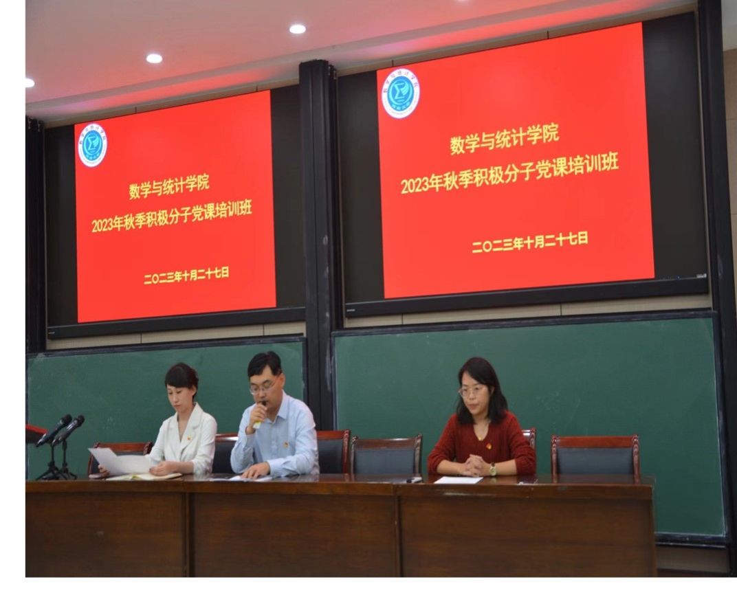 2023年秋季入党积极分子党课培训班开班仪式在学院二楼南阶教室举办,学院党委书记曹志伟、党委副书记刘佳明、党委办公室主任吴苏苏以及培训班全体学员出席仪式。仪式由吴苏苏主持。