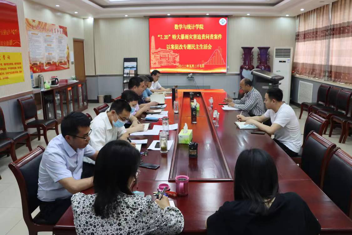 在二楼会议室召开“7·20”特大暴雨灾害追责问责案件以案促改专题民主生活会。校党委巡察工作办公室副处级巡察专员杨更须、校纪委监察专员办公室综合室干部汪华莅临指导,学院全体领导班子成员参加会议。会议由院党委书记史富强主持。