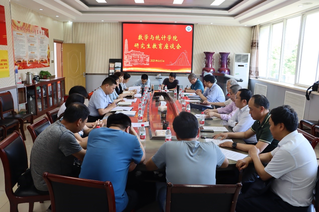 研究生教育会议的相关精神,并就新时代学院研究生教育培养工作进行深入的讨论和谋划。副校长冯淑霞、数学学科研究生培养指导委员会主任委员吴可、应用统计专业硕士研究生培养指导委员会主任委员薛留根、教务处副处长白永强、学院领导班子全体成员、校特聘教授关庄丹以及部分博士、硕士研究生导师代表共二十多人参加了座谈会。