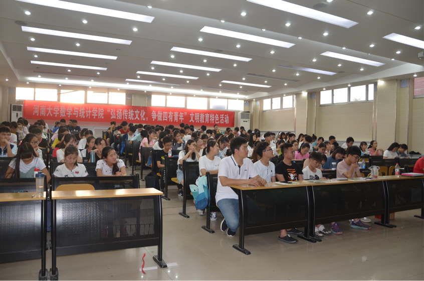 以“弘扬传统文化,争做‘四有’青年”为主题,成功举办了文明教育特色活动,活动由学院2017级辅导员安其丰组织,2017级金融数学、统计学等专业全体学生参与。