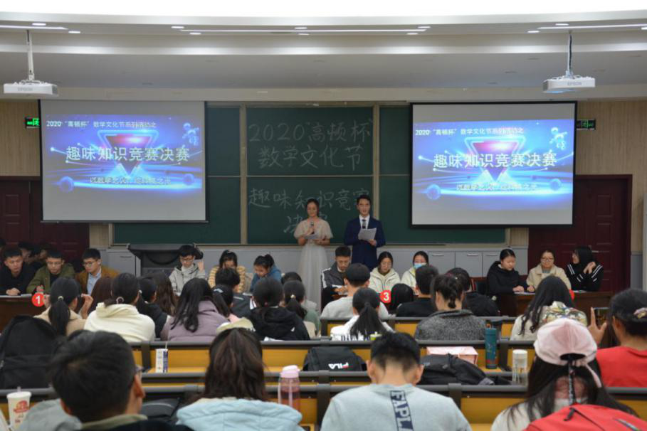 为拓宽同学们的知识面,提高数学学习的积极性和主动性,我院于11月26日晚在南阶教室举办了“高顿杯”数学文化节系列活动之趣味数学知识竞赛决赛。学院副院长解俊山、学院团委书记吴苏苏、青年教师王龙飞和李亚莉担任仲裁。