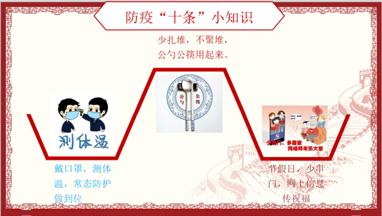 会上,同学们积极发言,分享了自己的假期计划和假期收获,有每天按时学习的自律成果,也有帮父母分担家务的温情瞬间……抗疫志愿服务故事分享环节中,有同学分享自己成为村里疫情防控志愿者的故事,心里有一份热便发一份光,实现了从“受益者”到“助人者”的完美蜕变。还有同学分享了主动帮助中老年人使用健康码,积极解决健康码应用过程中产生的问题的故事,为疫情防控出自己的一份力。班委们还普及了许多防疫知识,向同学们重述防疫工作的要求,并设计了疫情知识问卷的轮流答题模式,让同学们在娱乐中增强对日常防疫的认识。