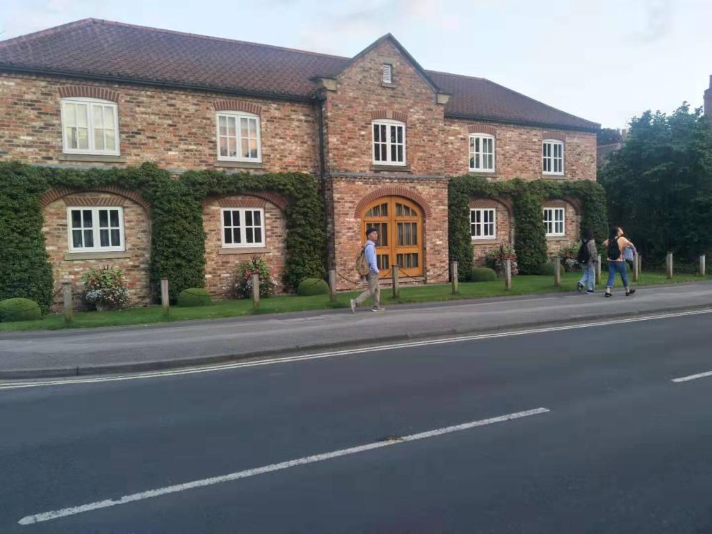 初到约克,我就被马路两旁的大片的草地和麦田所震撼了,草地上还有很多马群和羊群,它们安详地在低头吃草,仿佛没有看到我们一般。约克大学里面的一栋栋漂亮精致的民居也让我们赞叹不已,红色的砖墙上爬满了青绿色的藤蔓,白色的门前摆放着各种植物,整个街道安静又整洁。