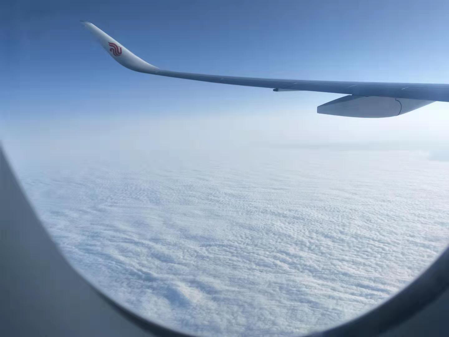 伴随着一阵飞机起飞带来的眩晕,我们从北京出发了。第一次坐飞机,在最好的靠窗座我可以一览窗外的风景。窗外的云、各种各样的大地和斑斓的彩虹都让我惊奇不已,不停地与旁边的小伙伴分享我所看到的种种美丽壮观的景色。我们飞过了沙漠,越过了冰川,从波罗的海的上空掠过……十一个小时的白天,我们似乎并不觉得疲倦,只有兴奋感和好奇。