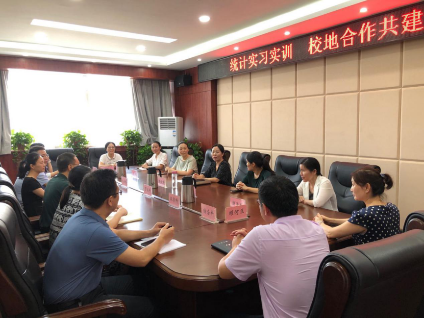 副院长王波带领应用统计专业硕士学业导师代表和9名2019级应用统计专业硕士研究生,赴开封市统计局进行学生为期6个月的实习实训校地对接。开封市统计局副局长杨文娣、顺河区统计局副局长王建豫及市局各科室负责人参加了对接会。