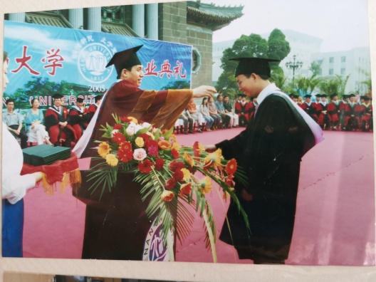 2001年9月10日,背起行囊,转了两次车,到了开封火车站河大新生接待站。再坐学校的大巴车,来到仁和公寓的新生报到处,和通知书颜色一样,数学系的旗子也是蓝色的。一切都是崭新的,一切都是晴朗的,和当时的心情一样。学长学姐的热情接待自不必说,只是在办手续时有一样在接待处无法办理,需要去系办公室单独处理,那是我的党组织关系介绍信。一位三年级的学长带我去系办找老师,顶着大太阳跑了老半天才进了依城墙而建的校东门,经过艺术学院,走过东十斋房来到东一斋,数学系在此办公。进入楼内,古朴典雅,第二个房间就是党总支办公室,在那里我见到了学院的首位老师,也是直到现在还亦师亦友的高志锋老师。高老师接过我的介绍信,翻了翻手边的小本子说:“你的档案我看过,中学时做过学生会主席,也是省级优秀学生干部,只是里面没有体现你的党员身份,介绍信交给我就行了,先去办其他手续吧”。寥寥数语,已经让我明白了这里老师的敬业,学生还没到,竟然提前深入了解学生的情况。