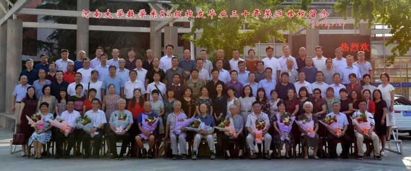 同学们,咱们这次30年聚会,不仅是大家、老师和学院领导所期盼的,也引起学校广泛的关注,并表示祝贺!也有人问我说,你们“数学系85级”有多少大官、几个大款?我就给他们谈了咱们这届同学的情况,我们这200来名同学,经数学系四年的教育培养,凭借扎实学识、较强能力、良好素质,经过自己的艰苦奋斗和努力打拚,大家都在各自的岗位上、领域内干出了出色的成绩、创造出了各自的辉煌!而且,他们步子走的很稳、很扎实、很坚定,也定会很长远。改革开放40年的伟大成就中有他们30年的奉献,新中国壮丽70年中有他们30年奋斗!