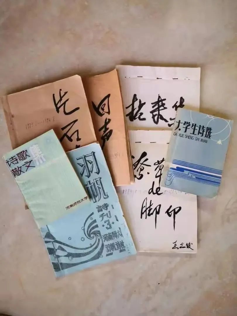 学校成立有羽帆诗社,以中文系诗歌爱好者为主体、新诗创作为特色,聘请著名作家魏蘶、端木蕻良等为顾问,囊括了校园一众诗歌发烧友。我也应邀加入,参与活动,并在社刊《羽帆》上发表作品。2013年12月,纪念羽帆诗社成立30周年暨《羽帆诗选》出版新闻发布会在河大举行,我的7首诗及访谈入选十卷本的《羽帆诗选》。我专程赴会助兴,与当年的诗友们欢聚一堂,其中多为活跃在河南乃至国内文学界的著名诗人。