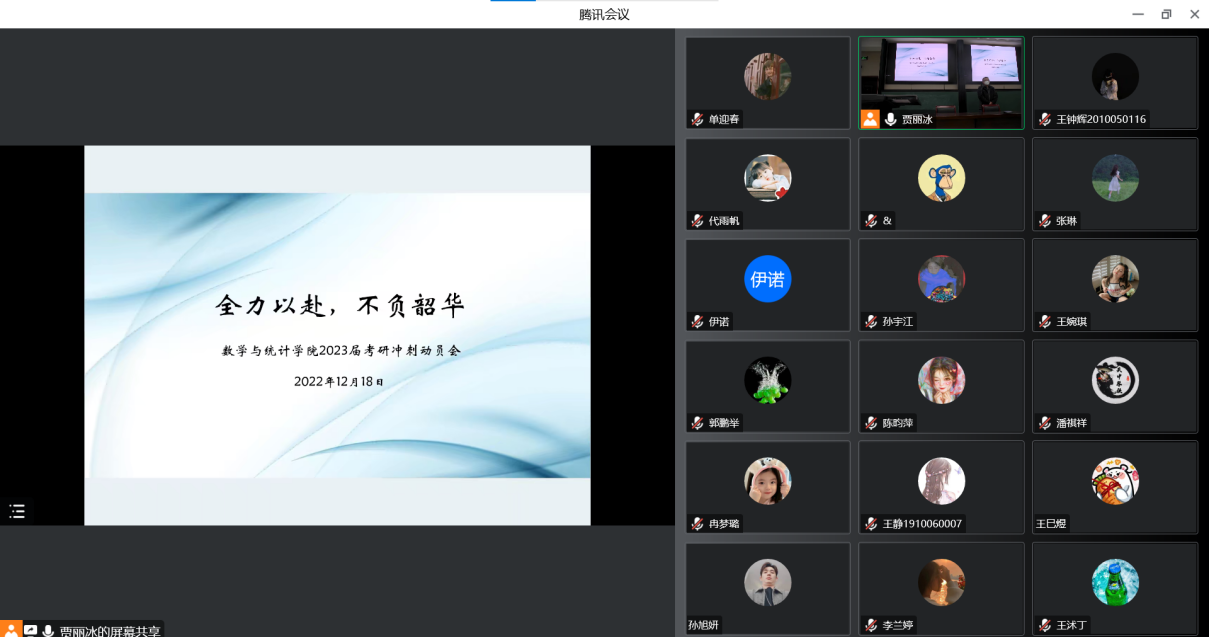 在南阶教室举办了2023届学生考研冲刺动员会。会议以线上线下两种方式相结合。院党委书记史富强、院长韩小森、2019级辅导员贾丽冰到会为同学们加油打气,百余名考研学子参会。