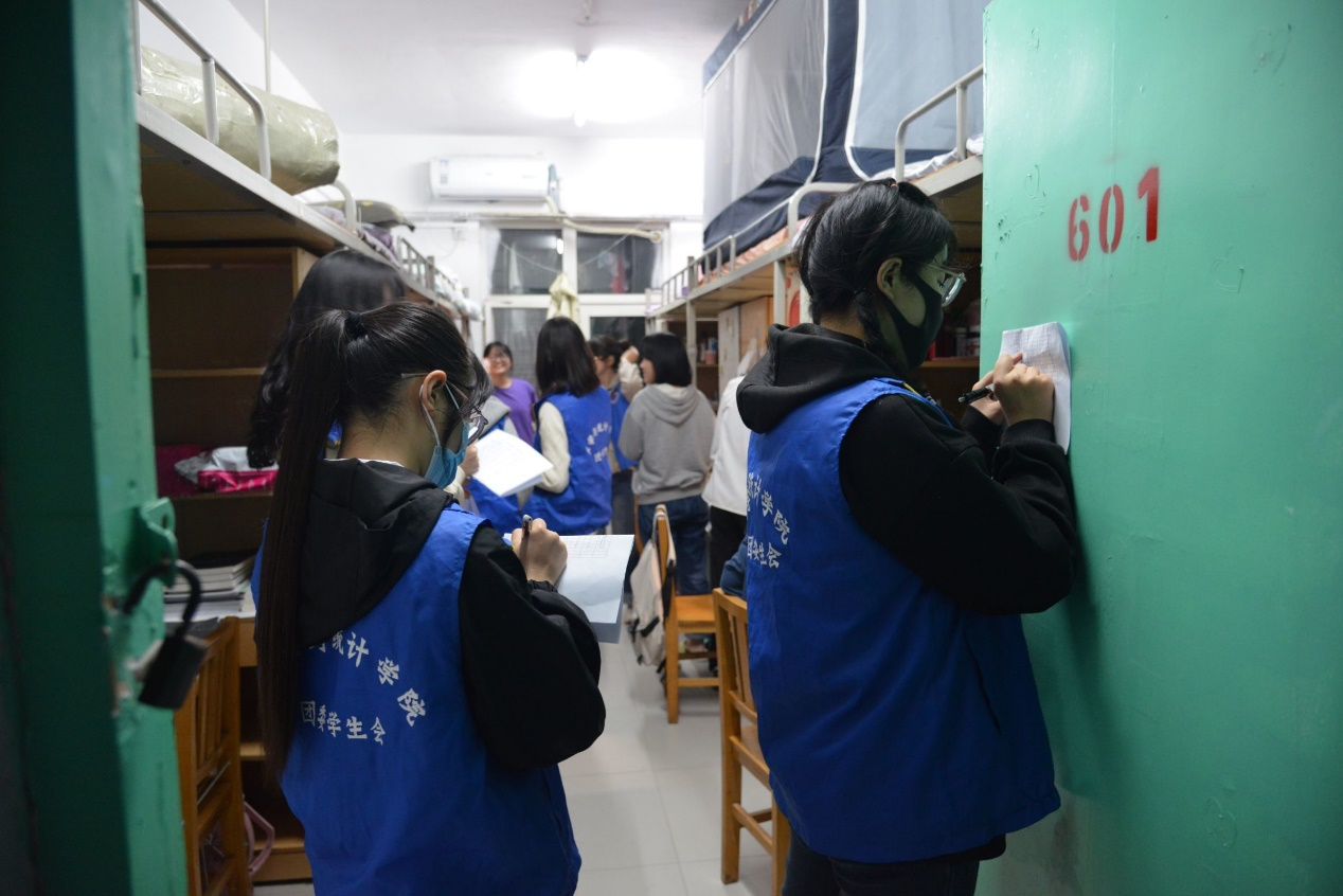 举行了新生们宿舍文化节活动,同学们纷纷组织参与。10月16日晚上七点,学生会各部门负责人分别到女寝南苑5号楼和男寝研组团18号楼对参评宿舍进行评比打分。