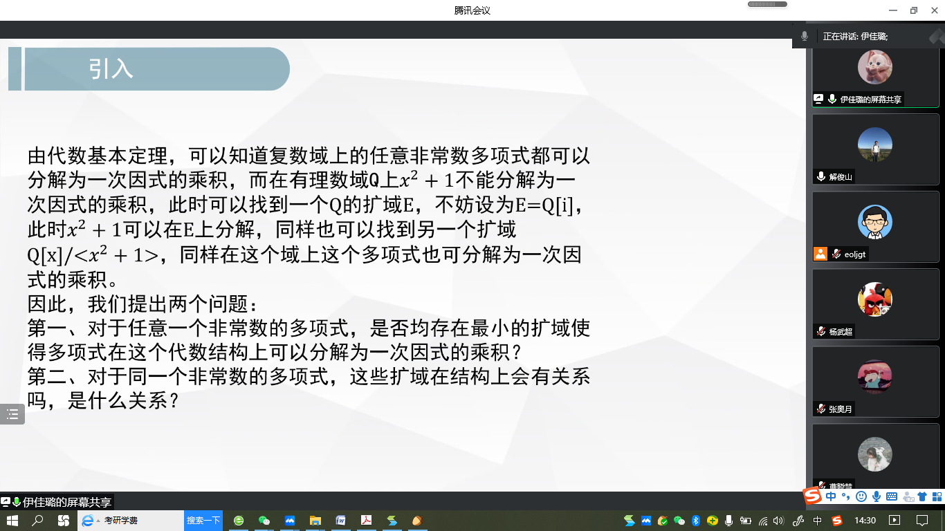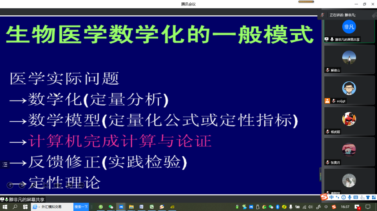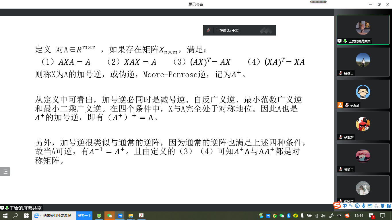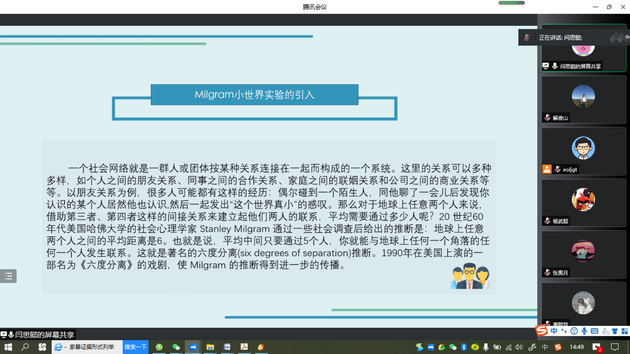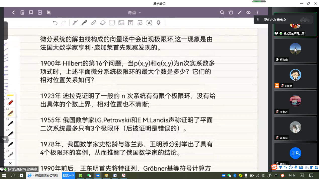 “明德计划”数学与应用数学专业2019级实验班举行学术交流活动,活动在线上腾讯会议平台进行。学院副院长解俊山,班主任王中华和2019级实验班19位同学参加了活动。