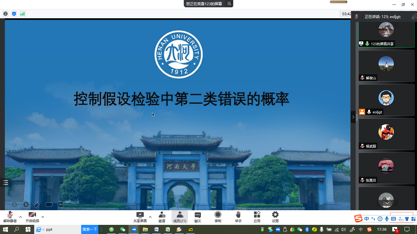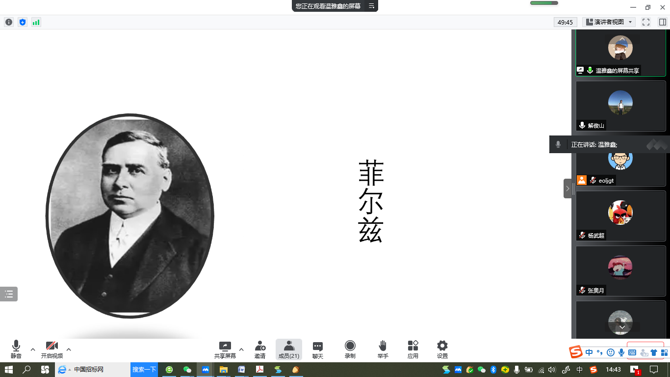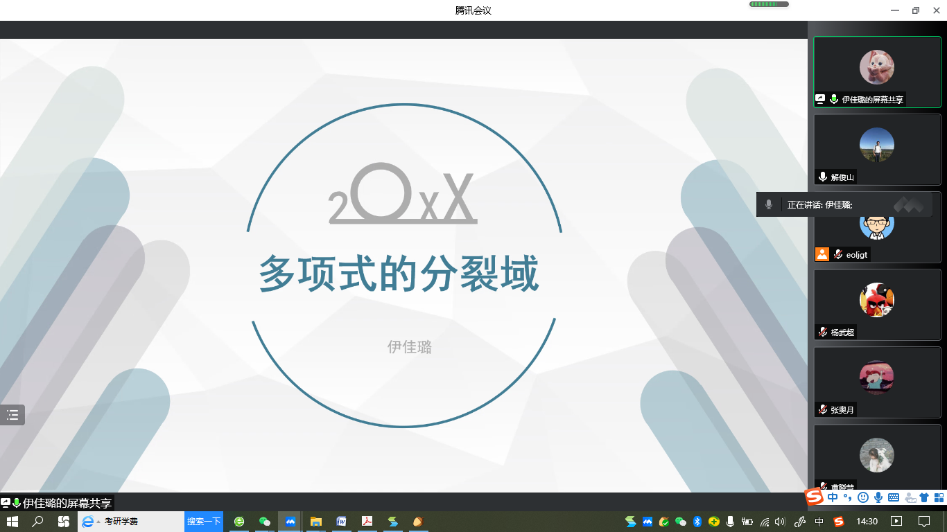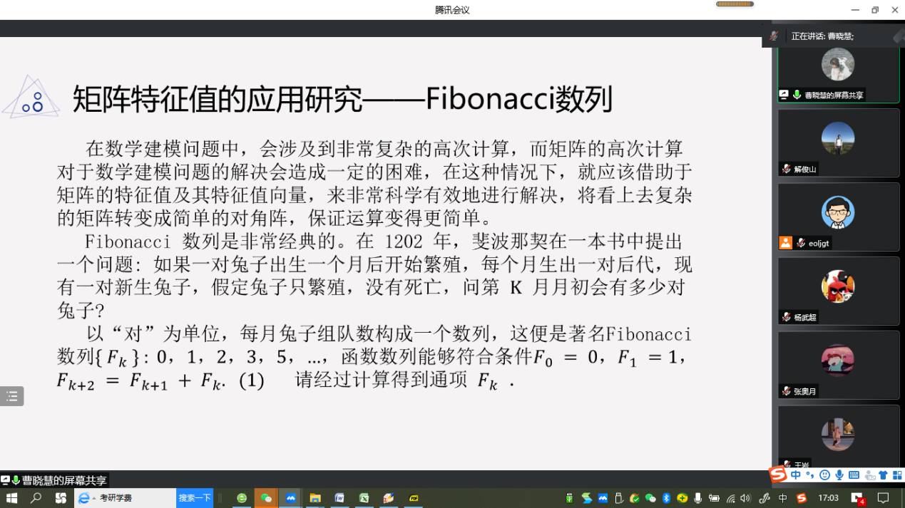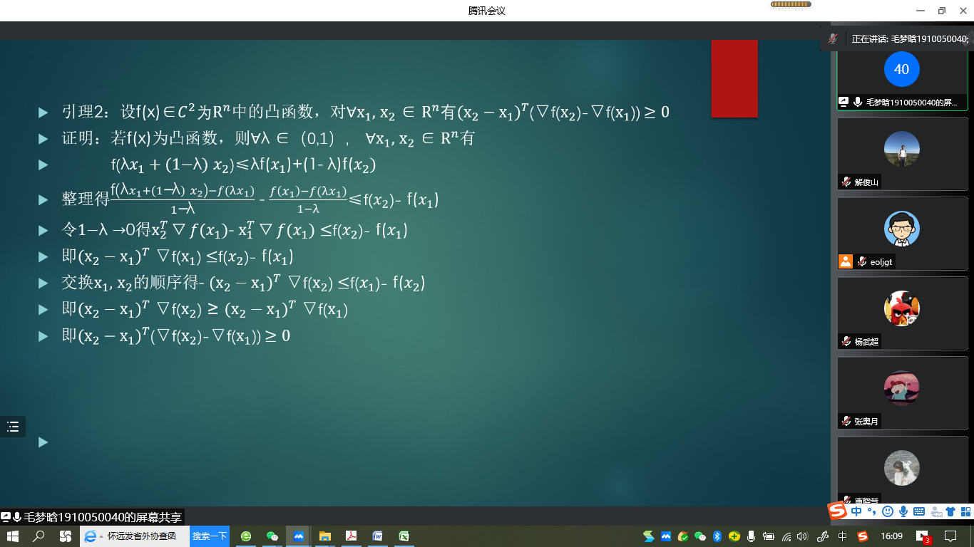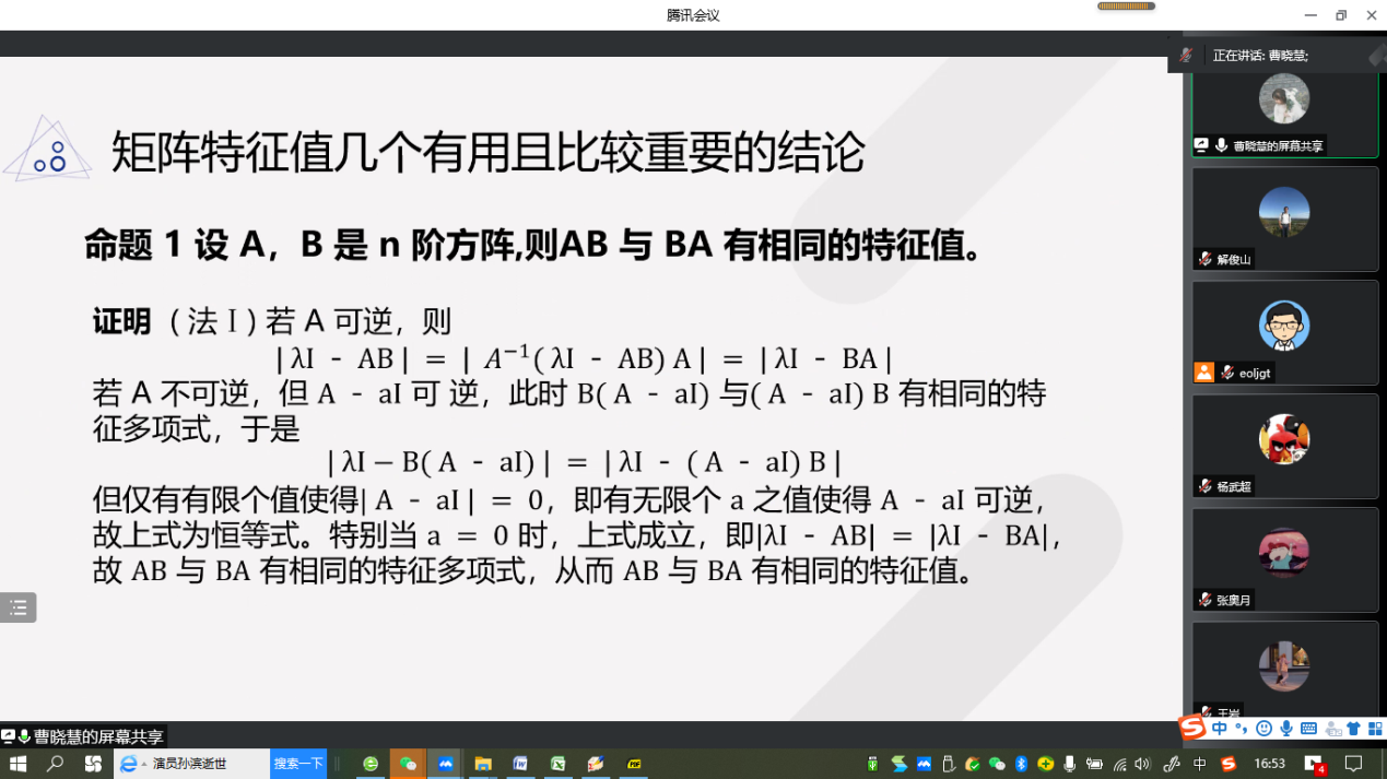 “明德计划”数学与应用数学专业2019级实验班举行学术交流活动,活动在线上腾讯会议平台进行。学院副院长解俊山,班主任王中华和2019级实验班19位同学参加了活动。