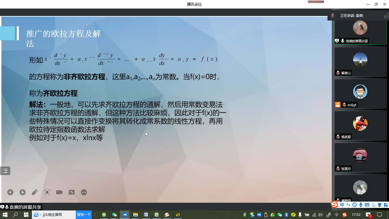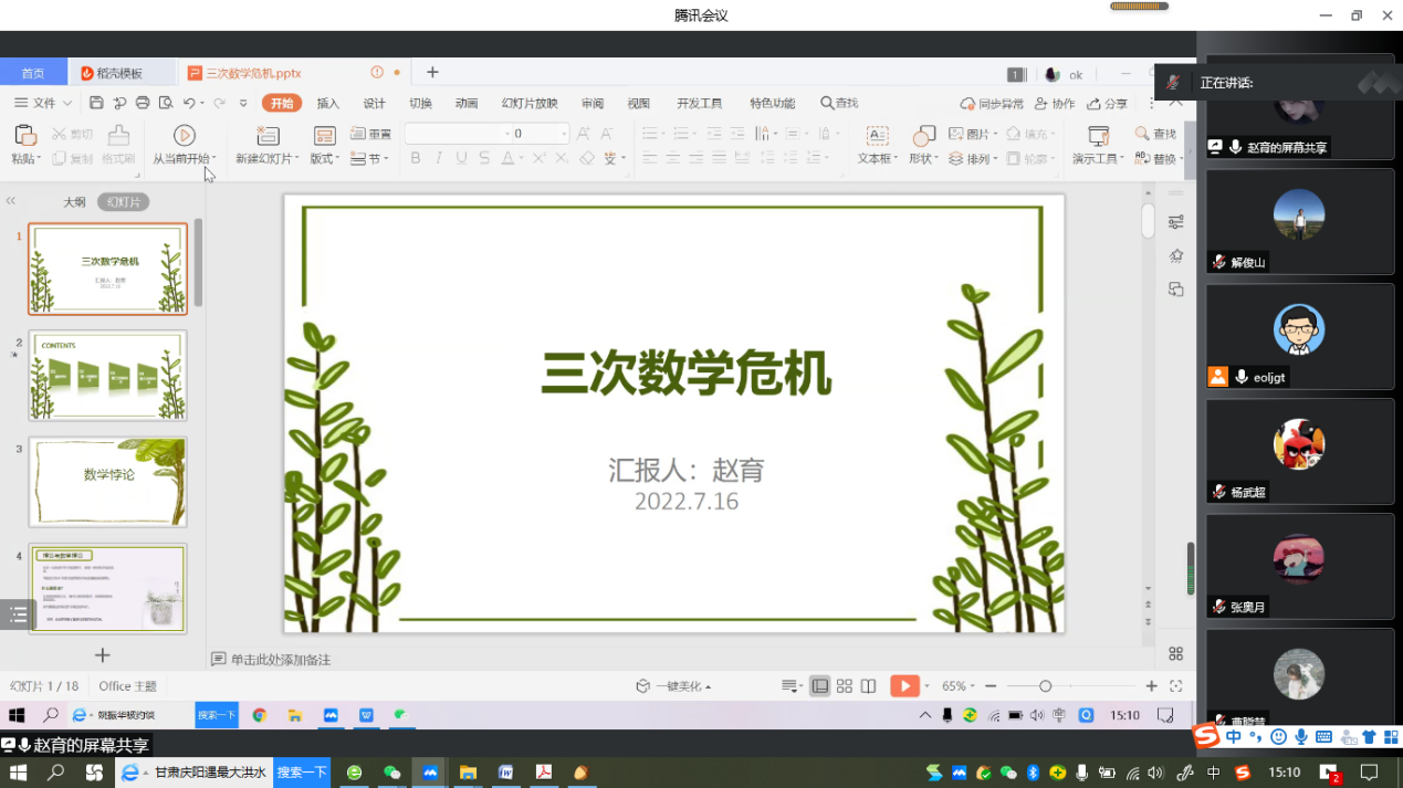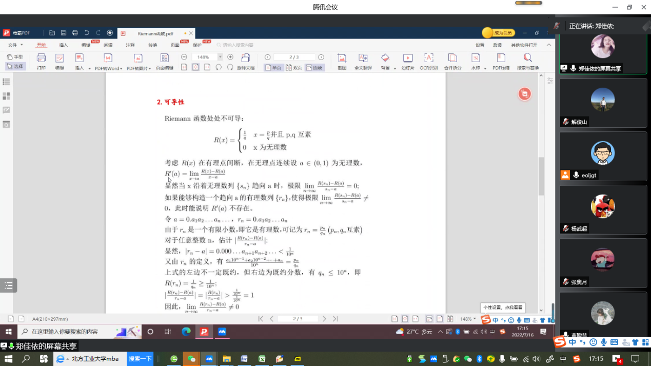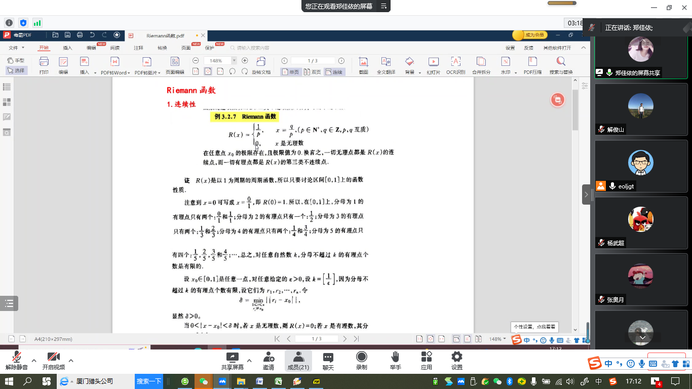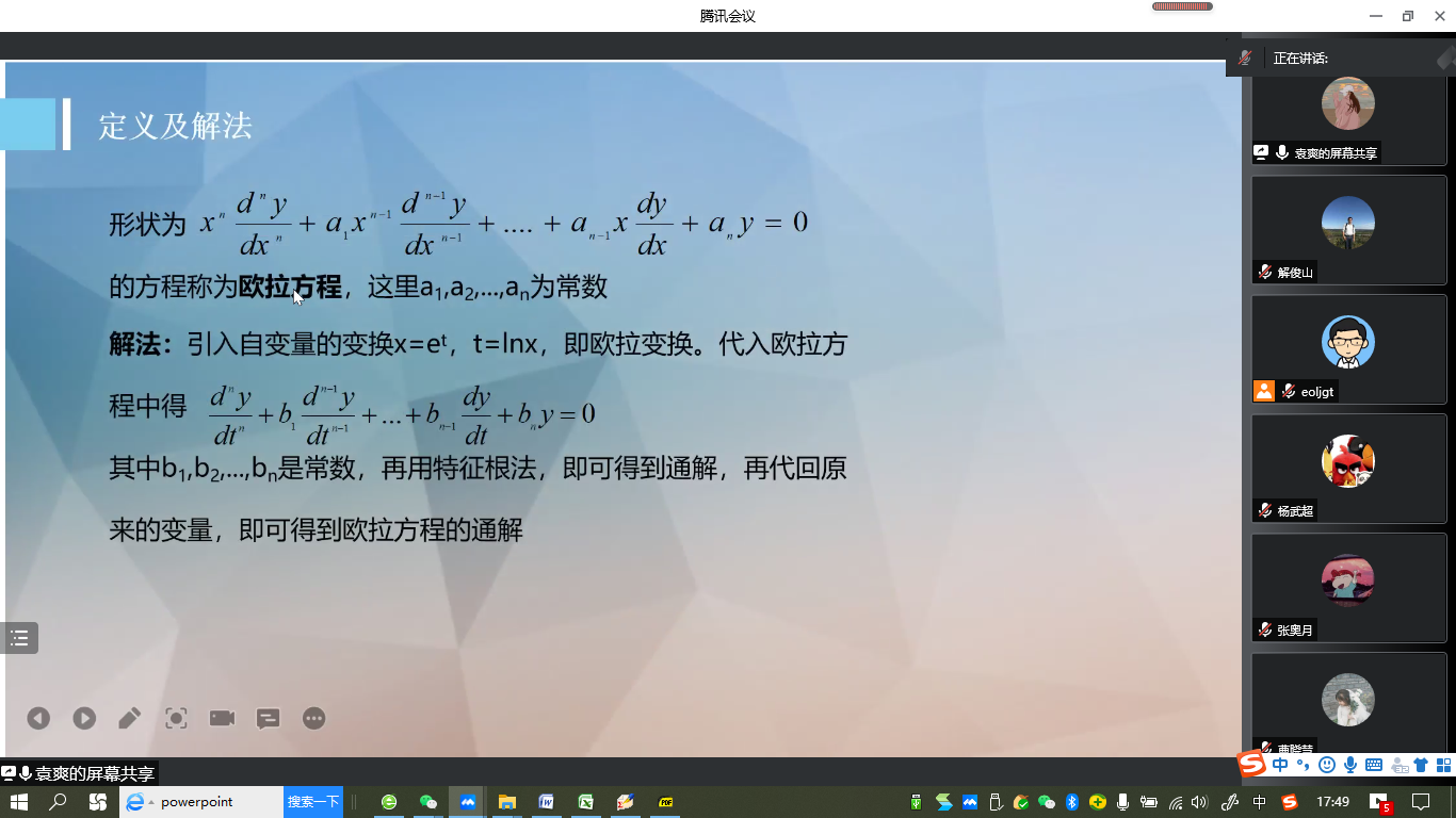 “明德计划”数学与应用数学专业2019级实验班举行学术交流活动,活动在线上腾讯会议平台进行。学院副院长解俊山,班主任王中华和2019级实验班19位同学参加了活动。